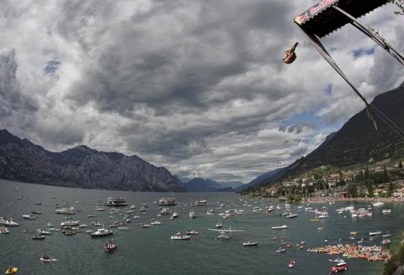 12. Саша Куценко из Украины прыгает с 27-метровой платформы в Мальчезине, Италия. (© Romina Amato/Red Bull Cliff Diving)