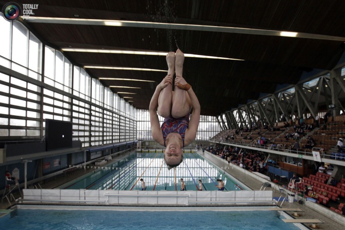 28. Тренировка в самом разгаре. Сначала прыжки отрабатываются в спортзале, затем спортсмены переходят в бассейн. (STEFAN WERMUTH/REUTERS)