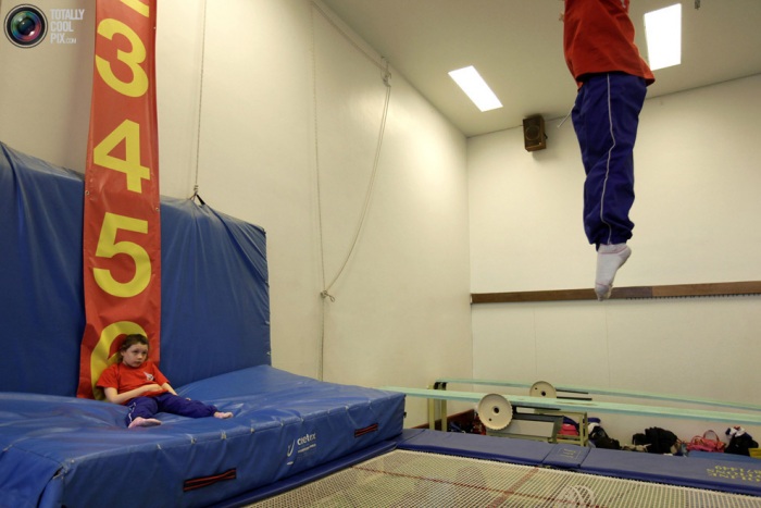 9. Девочка прыгает с трамплина под пристальным взглядом китайского тренера. (STEFAN WERMUTH/REUTERS)