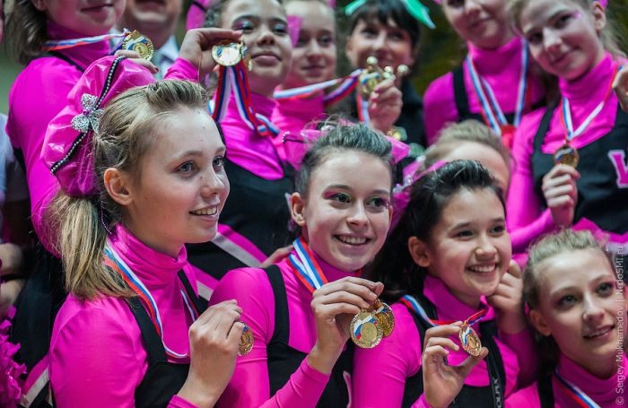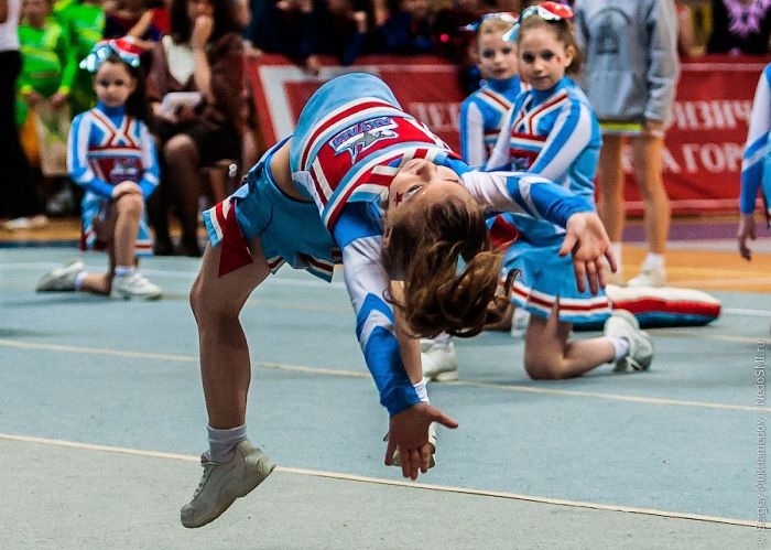 Но и это еще не все. Между командами черлидинга проходят соревнования по номинациям: чир, чир-данс, чир-микс, групповые станты и т.д.