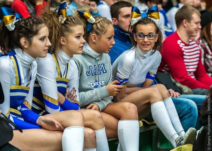 Здорово — это не то слово, чтобы передать впечатления. Девушки, юбочки, классная музыка (а под другую и не потанцуешь), помпоны и просто чумовая поддержка команд! Причем, даже не от зрителей, а от самих участниц, которым абсолютно не влом повизжать за понравившееся выступление конкуренток.