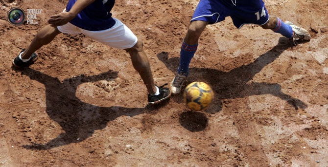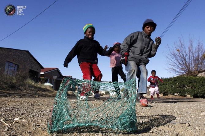 Дети играют в футбол в поселке Manguang недалеко от Блумфонтейна, ЮАР.