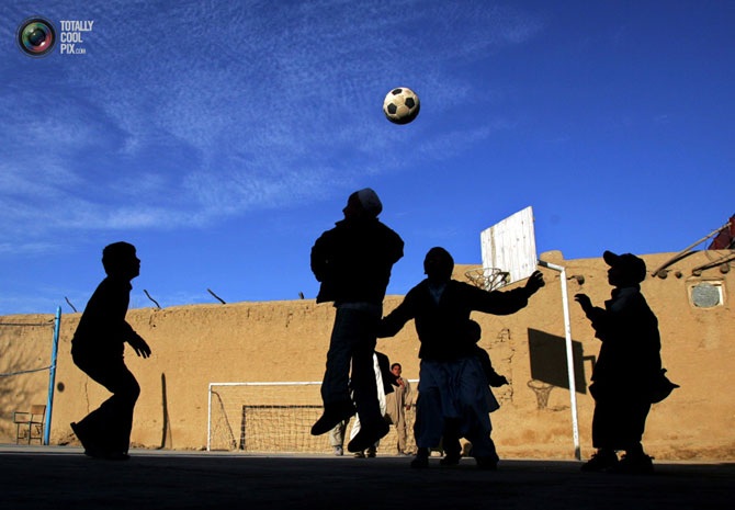 Афганские сироты играют в футбол в городе Мазари-Шариф.