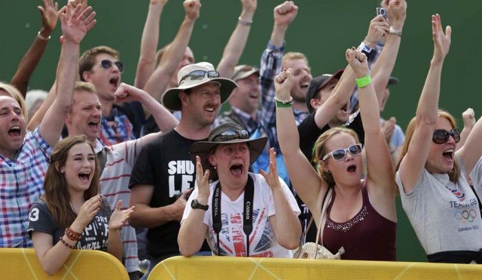 17. Зрители радуются победе Брэдли Уиггниса. (Cathal Mcnaughton / Reuters)