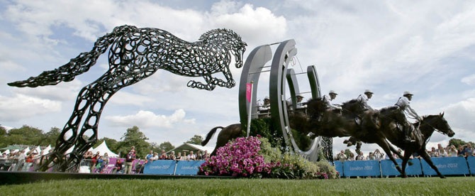 Австралиец Эндрю Хой (Andrew Hoy) участвует в соревновании по конкуру на летних Олимпийских играх в Лондоне, 30 июля 2012 года.