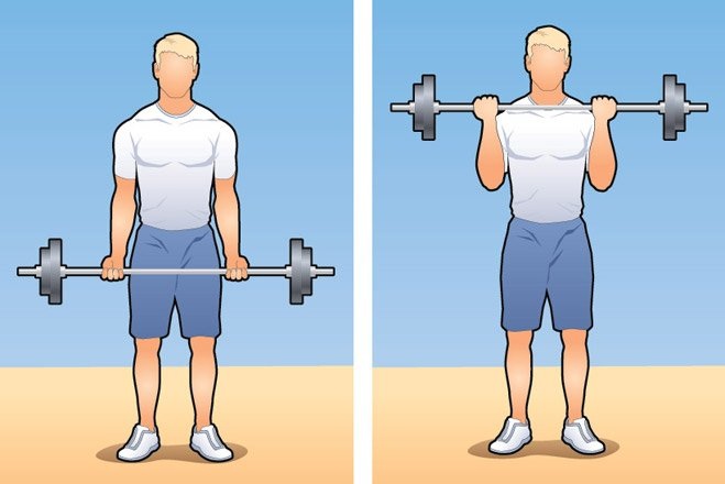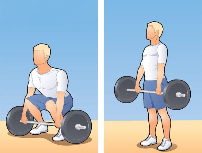 Положи уже украденную штангу на пол перед собой. Возьмись за нее широким хватом и, держа спину прямой, подними до уровня паха (упражнение лучше выполнять после опадания эрекции, которую вызовет предвкушение контакта с женщиной).