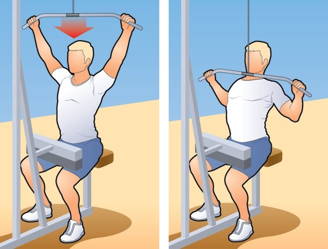 В дополнение к уже известным тебе приседаниям и сгибаниям рук включи в тренировку тяги к груди и гиперэкстензию. Наши рисунки так подробны, что и добавить нечего. Разве что… мы понимаем, что уже надоели тебе с этим, но… и тут тоже старайся держать спину прямой.