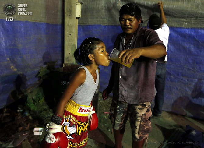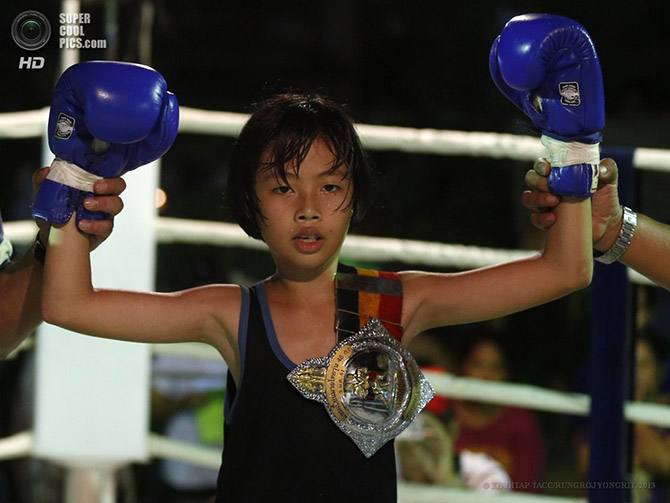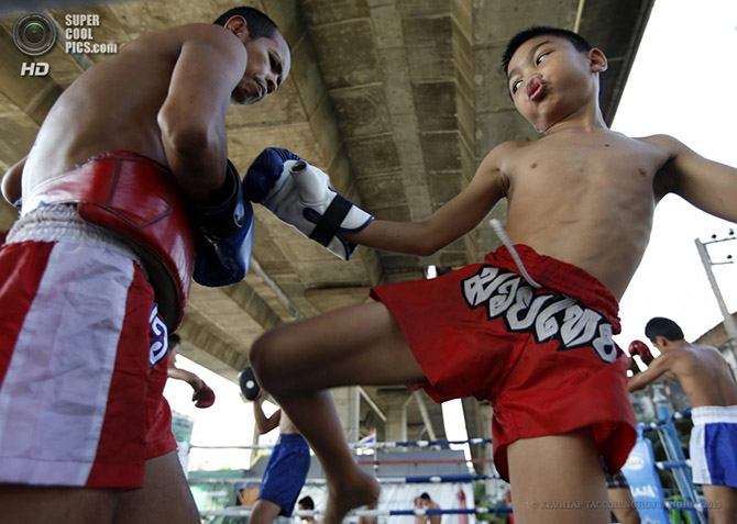 Таиланд. Бангкок. 20 марта. Девятилетний Танапонг «Рэмбо» Унпуанг разогревается перед спаррингом.