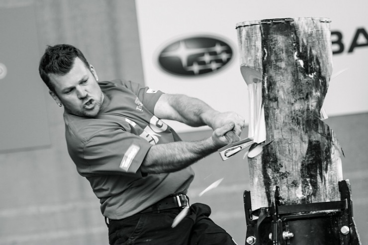 7. В настоящее время лесорубы соревнуются в шести разных дисциплинах, включающих работу бензопилой и топором.