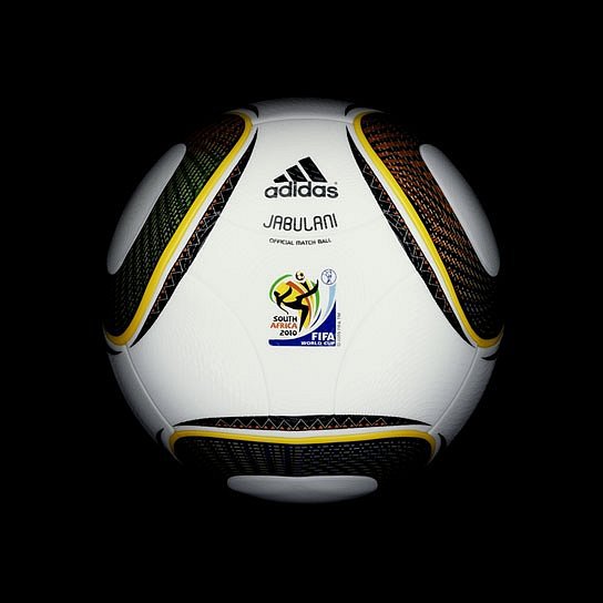 Мяч Jabulani, которым играли команды на чемпионате мира в ЮАР. Количество фрагментов снова уменьшилось – с 14 до 8. Этот мяч стал бы настоящим стихийным бедствием для вратарей, если бы не был настолько неудобен для нападающих.