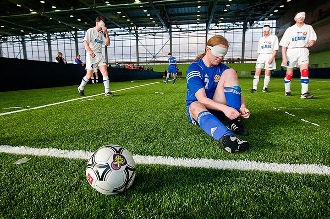Они ничего не видят, но очень хорошо слышат. Поэтому играют не обычным мячом, а «погремушкой» — в мяч встроена звуковая система с шариками и игроки определяют его местоположение по звуку. Самое удивительное, когда незрячий игрок забивает гол зрячему вратарю. Как нужно чувствовать пространство, чтобы верно ударить по невидимому тебе мячу и попасть в невидимые ворота — уму непостижимо.