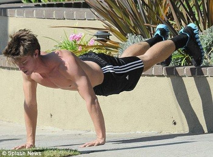 18-летний Патрик решил пойти по стопам своего папочки Арнольда — он так же любит интенсивные тренировки.