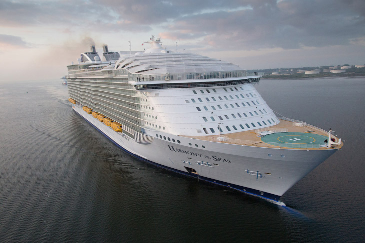 Самое большое круизное судно на планете готово выйти в первый рейс. Построенный во Франции лайнер Harmony of the Seas длиной 362 метра прибыл в британский порт, откуда он отправится в свой первый долгий морской поход.