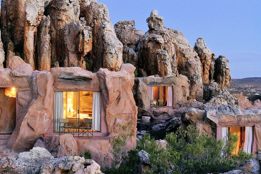 Пещерный отдых может быть таким же комфортабельным, как и проживание в самых современных и инновационных гостиницах, — отель Kagga Kamma Private Game Reserve в Седербергских горах в Южной Африке, находящихся в 250 км от Кейптауна, служит тому наглядным подтверждением. Отель состоит из 10 номеров, которые находятся в «разбросанных» по горному массиву пещерах. Уникальность им обеспечивает не только необычное месторасположение, но и наскальные рисунки, созданные около шести тысяч лет назад.