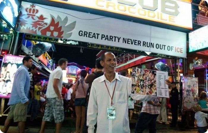 На весь мир прославлено такое злачное место Таиланда как патонгская BangLa Road – улица «красных фонарей» с примыкающими к ним кварталами из заведений питейно-развлекательного типа. Днем на улицах торгуют сувенирами, а с наступлением ночи – эротическими фантазиями. Хочешь – смотри, хочешь – заказывай материализацию своих самых сокровенных грез. Вопрос физического воплощения мечты в реальность напрямую зависит от степени наполненности кошелька. Кредитные карты не принимаются.