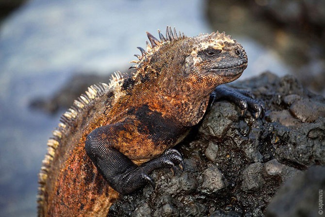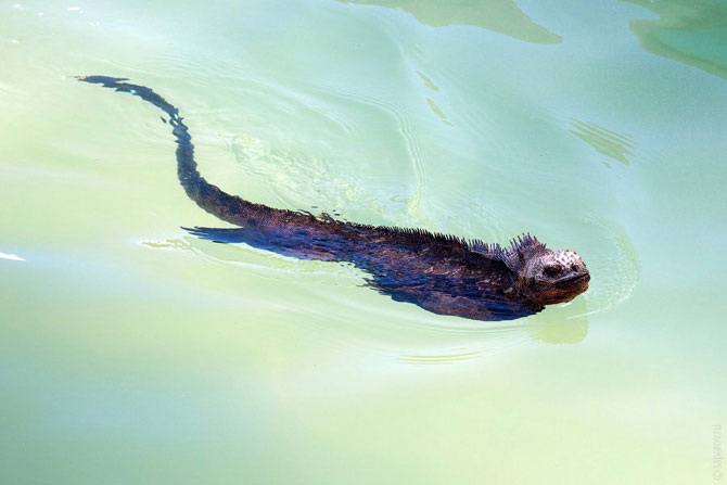При всей своей чудовищной внешности, игуаны совершенно безобидны и питаются исключительно водорослями.
