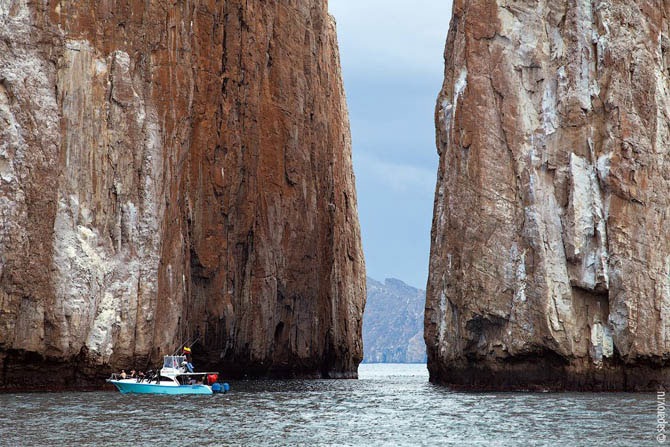 На острове есть нескольких интересных мест, которые можно увидеть только с воды. На наш вопрос — как туда добраться, младшая Виттмер ответила, что никак — это территория нацпарка, и туристам там находиться запрещено. К счастью, это была очередная ложь. Довольно быстро нашелся обладатель лодки, который согласился отвезти нас туда за небольшую плату. За несколько часов поездки мы наснимали много голубоногих олушей и других пернатых.