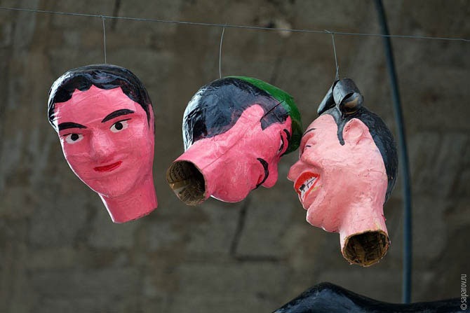 Самое интересное происходило на Новый год. Когда мы только приехали на остров, первое, что привлекло наше внимание — разноцветные человеческие головы из папье-маше, выставленные в местном магазине. Назначение их было непонятно.