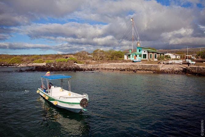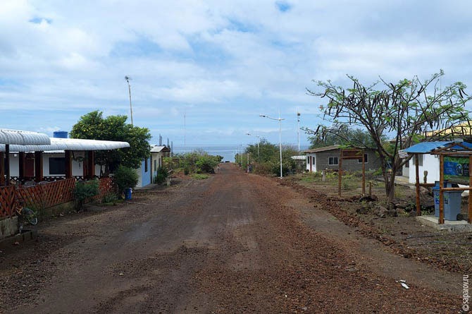 Единственное поселение на острове — деревня под названием Puerto Velasco Ibarra — несколько домиков и две неасфальтированные улицы.