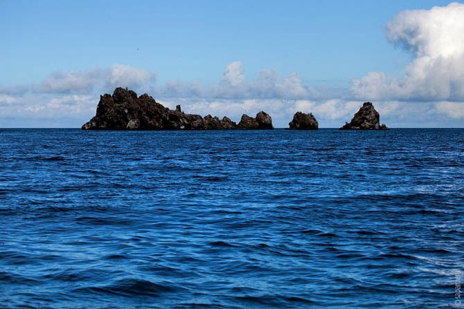 Во время первых шести погружений я не увидел вообще ничего, кроме косяков однообразных рыб и одиночных морских львов. И только погружения на Gordon Rocs и Leon Dormido можно назвать успешными. Оба дайв-сайта — одинокие скалы посреди океана. Около скал очень сильные течения. Тактика дайва — зацепился за скалу и ждешь, когда что-то проплывет мимо. На Гордон рокс было много акул — хаммерхеды ходили стаями штук по двадцать. Несколько раз были манты. На Леон Дормидо видел стаи мелких акул и несколько черепах. Обидно, что чаще всего все это проплывало далеко, можно было рассмотреть и сфотографировать только смутные силуэты.