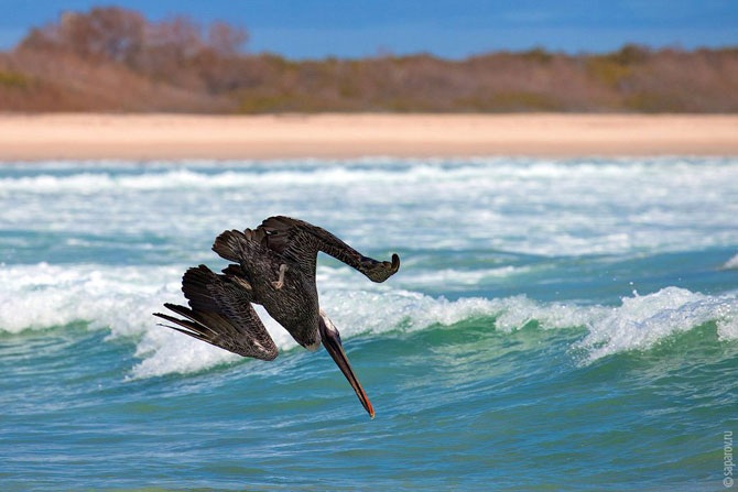 На берегу много пеликанов и морских игуан (о них подробно расскажем дальше).