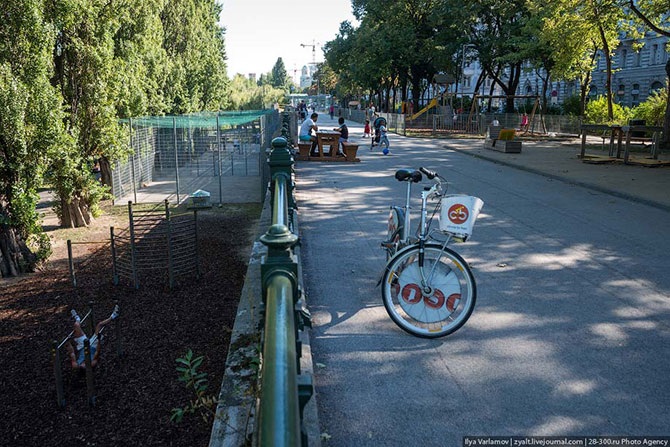 В Вене, как и во всех нормальных городах, есть удобный городской прокат велосипеда. Бесплатно можно кататься час!