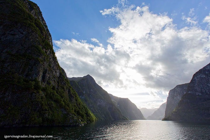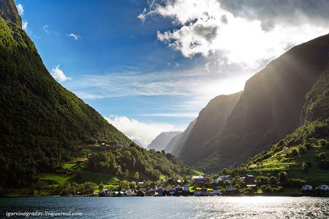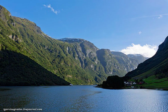 Согне-фьорд — 204-х километровый гигант, глубинной в 1308 метров включает в себя еще несколько более маленьких фьордов.