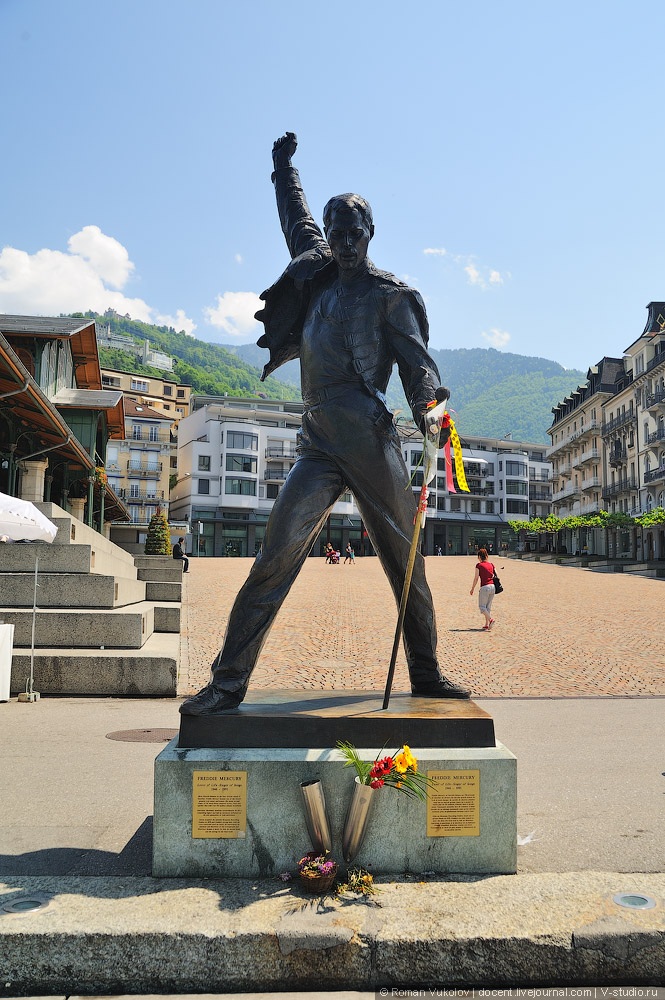 Монтрё – это город-курорт на Женевском озере. Он относится к так называемой Ривьере, наиболее элитной и дорогой местности Швейцарии. Живописность этих мест во все времена привлекала различных богатеев, аристократов и творческую интеллигенцию. Здесь жили, работали и отдыхали такие известные личности как Чайковский, Толстой, Стравинский, Набоков. Последний к тому же похоронен в окрестностях этого города. А в соседнем Вевё провели свои последние годы жизни Чарли Чаплин и Грэм Грин. Это не говоря еще об известных рок-музыкантах, чье творчество тесно связано с этим городом, и к которым мы еще вернемся.
