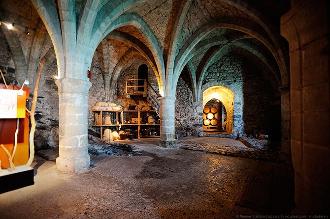 Интерьеры и подвалы замка достаточно характерны для любого средневекового замка.