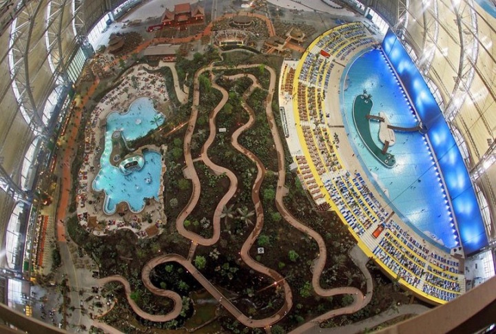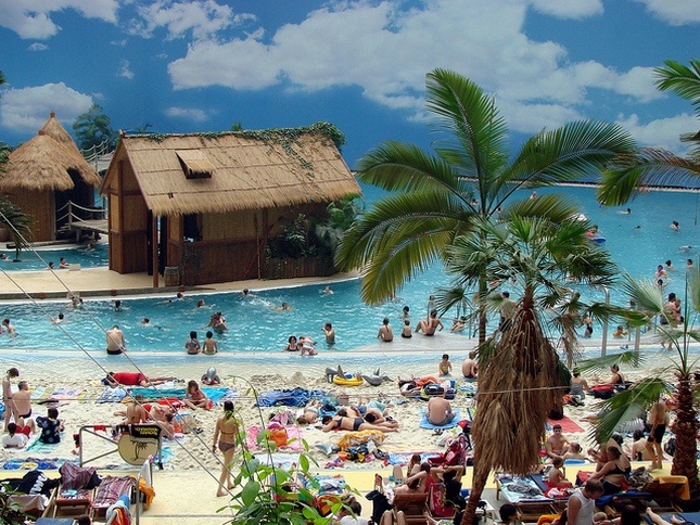 7. Гости могут полежать на искусственном пляже длиной в 200 метров, поплавать в искусственном море и круглый год наслаждаться погодой в 26 градусов по Цельсию.