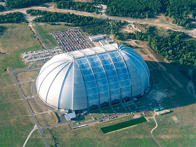 2. Здание заказывали как ангар в ноябре 2000 года, но его так и не построили. Компания обанкротилась в 2002 году, а через два года открылся курорт «Тропические острова».
