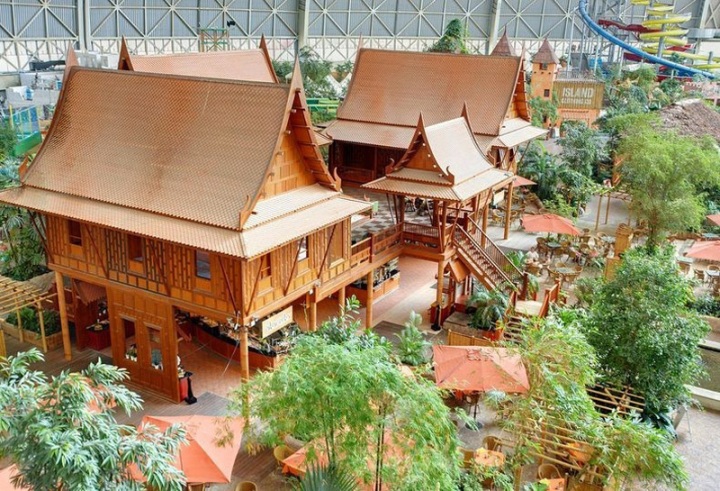 10. Бассейны окружают копии знаменитых архитектурных чудес из Азии, например, Ангкор-Ват, балийские Храмовые ворота, дом с Барнео и традиционный тайский дом.