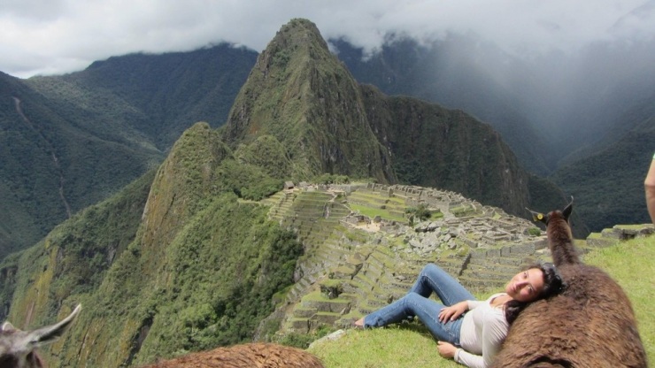 22. Оперевшись на ламу над крепостью Мачу-Пикчу.