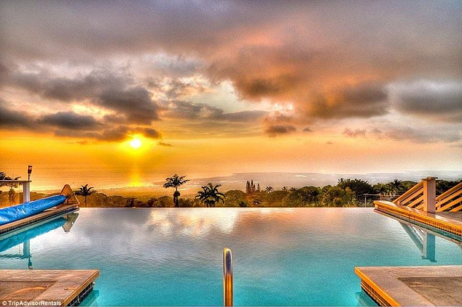 Бассейн-инфинити с видом на побережье Тихого океана на вилле Kona View Estate на Гавайях. Та территории виллы есть собственная кофейная ферма.