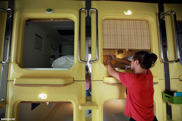 За 61 юань, или 10 долларов США, в городе Хайкоу, что в китайской провинции Хайнань, можно снять номер в отеле с удобствами. Правда, этот номер очень маленький. Сам отель занимает 200 кв.м. и предлагает постояльцам 26 капсул, размещенных в два ряда. Длина и ширина капсулы равна длине и ширине односпальной кровати. Зато в ней есть вентиляторы, встроенные телевизоры, wi-fi и складной столик. Что еще нужно для счастья?