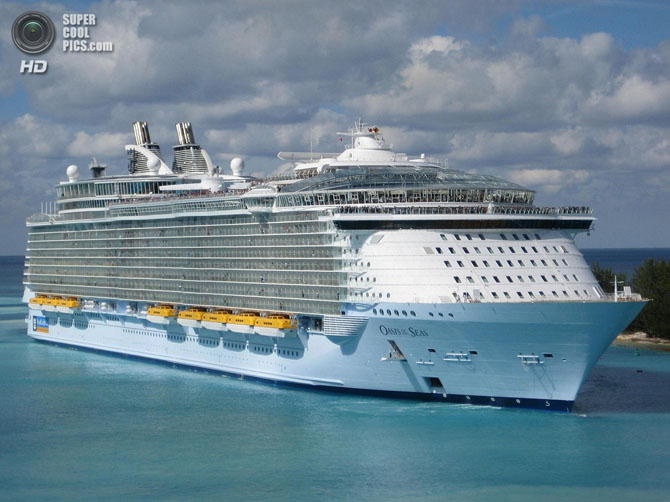Круизное судно «Oasis of the Seas» считается самым большим в мире. Его длина составляет 361 метр, ширина — 66 метров, водоизмещение — 225 000 тонн.