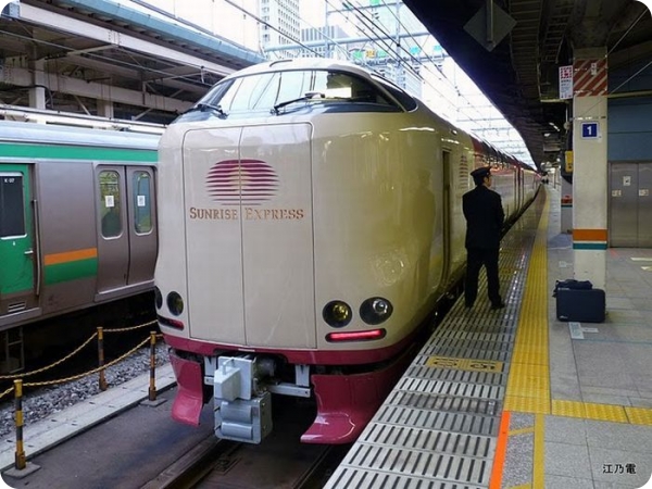 Это японский поезд Sunrise Izumo/Seto, который соединяет Токио с префектурой Симанэ на западе Японии и Такамацу на острове Сикоку. В Японии, одним из немногих, этот поезд является ночным, редко в какой стране такие существуют.