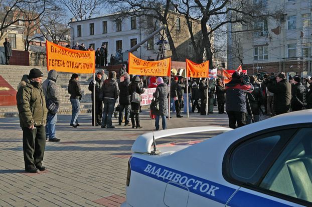 Во Владивостоке сегодня 14.12.2008 в 11 утра начался пикет против повышения пошлин на ввоз автомобилей, попутно против цен на бензин (до сих пор 25-30 рублей!), возможной отмены ввоза/эксплуатации праворульных авто и наплевательскому отношению к региону в целом.